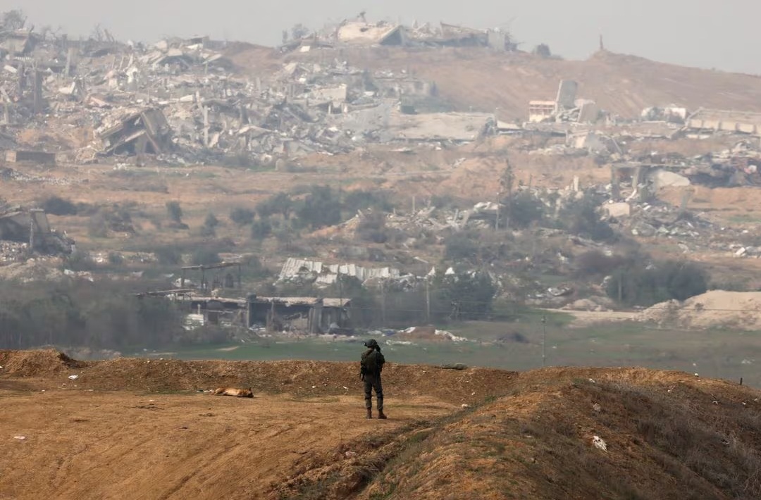 An Israeli soldier stands near the Israel-Gaza border, amid the ongoing conflict between Israel and the Palestinian Islamist group Hamas, in southern Israel, December 27, 2023. REUTERS/Amir Cohen Acquire Licensing Rights