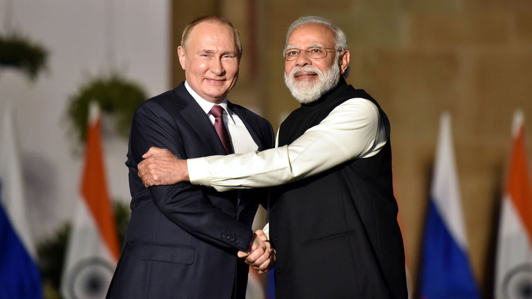FILE PHOTO: Russian President Vladimir Putin and Indian Prime Minister Narendra Modi. ©Sonu Mehta/Hindustan Times via Getty Images
